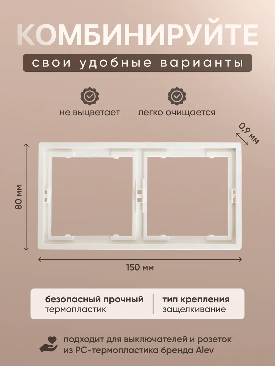 Представляем вам двойную рамку бренда ALEV серия Basic размером 150 мм *80 мм, предназначенную для установки розеток и выключателей. Рамка двухпостовая имеет горизонтальную ориентацию. Рамка двухместная изготовлена из термопластика, что обеспечивает надежность и безопасность в использовании. Представлена в трех цветах: серый, белый и черный. Рамки для выключателей и розеток из термопластика бренда ALEV сочетаются между собой, их можно комбинировать для создания уникального решения. Рамка белая отлично впишется в любой интерьер и подходит для использования в любых помещениях, включая квартиры, дома и офисы. Легко очищается с помощью влажной салфетки, не выцветает и стильно смотрится. Накладка на розетку и выключатель легко устанавливается с помощью защелкивания и может быть использована как при новой установке, так и при ремонте. Рамка от ALEV - это выбор для тех, кто ищет качественную и стильную рамку для установки электротоваров.