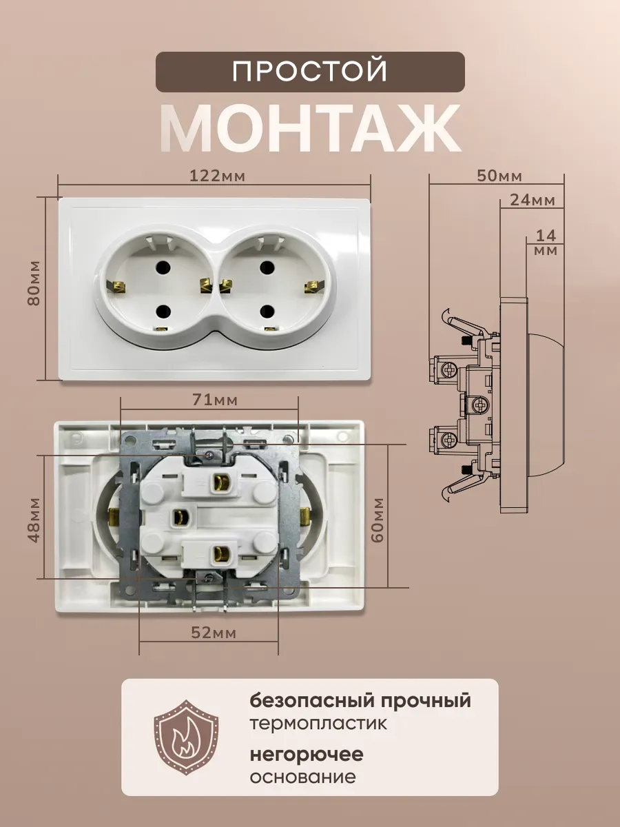 Двойная розетка в один подрозетник бренда ALEV серия Basic из PC-термопластика белая - это эстетичное дополнение интерьера, которое будет радовать вас стильным внешним видом и безупречной функциональностью. Можно поставить вместо одинарной электророзетки без дополнительного сверления и монтажа стен. Сочетающая качество и стиль встраиваемая модель оснащена закрывающими защитными шторками и заземлением для безопасности. Она идеально входит в стандартный настенный подрозетник квадратной или круглой формы (1 шт).