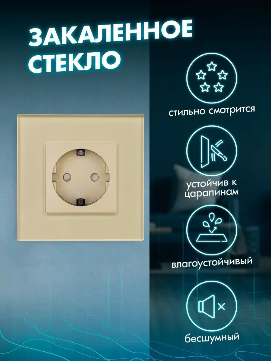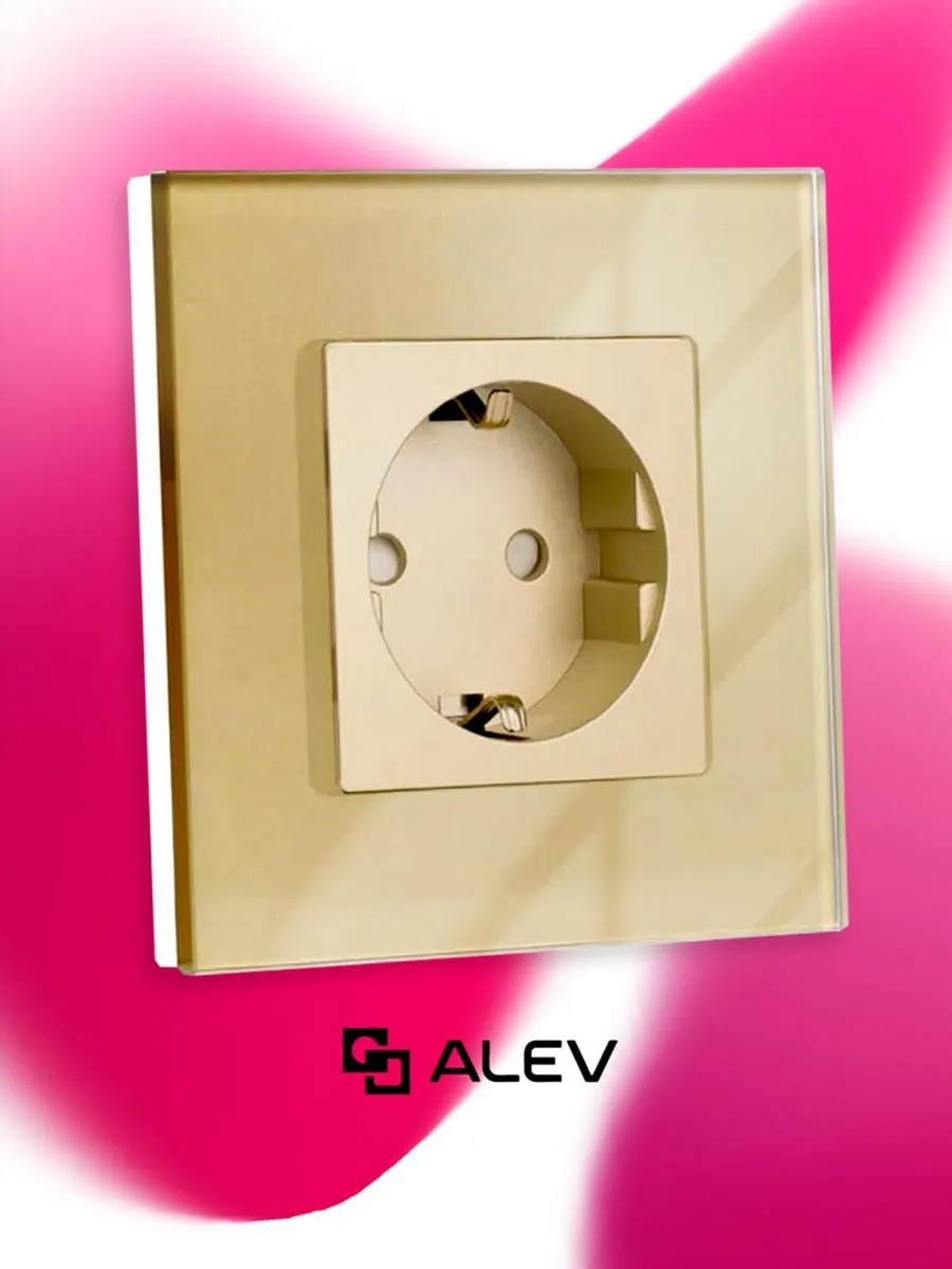 Одинарная розетка с рамкой из закаленного стекла золотая бренда ALEV серия Glass - это эстетичное дополнение интерьера, которое будет радовать вас стильным внешним видом и безупречной функциональностью. Сочетающая качество и стиль встраиваемая модель оснащена закрывающими защитными шторками и заземлением для безопасности. Она идеально входит в стандартный настенный подрозетник квадратной или круглой формы.