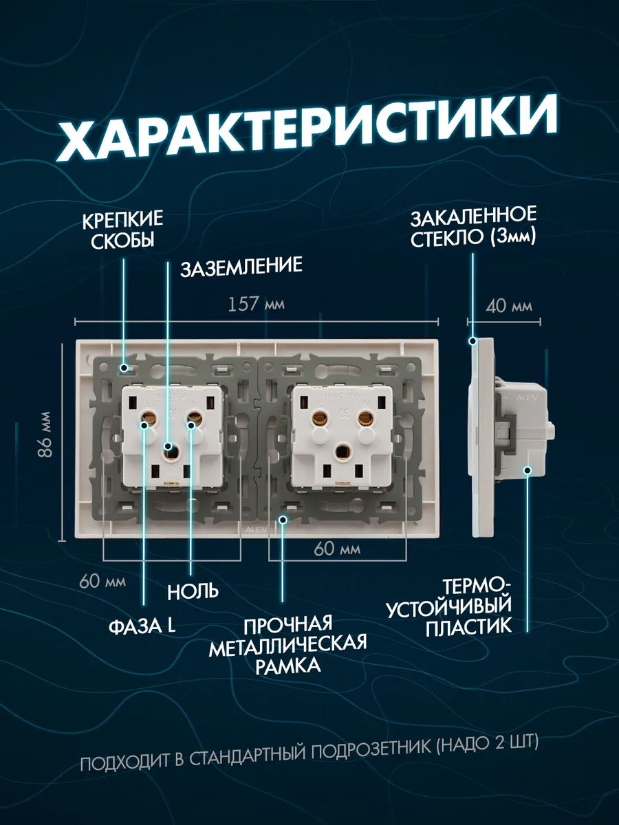 Двойная розетка с рамкой из закаленного стекла белая бренда ALEV серия Glass - это эстетичное дополнение интерьера, которое будет радовать вас стильным внешним видом и безупречной функциональностью. Сочетающая качество и стиль встраиваемая модель оснащена закрывающими защитными шторками и заземлением для безопасности. Она идеально входит в стандартный настенный подрозетник квадратной или круглой формы (2 шт).