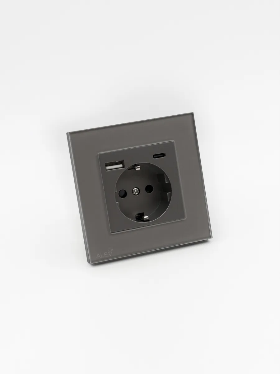 Одинарная розетка с рамкой из закаленного стекла серая бренда ALEV серия Glass - это эстетичное дополнение интерьера, которое будет радовать вас стильным внешним видом и безупречной функциональностью. Сочетающая качество и стиль встраиваемая модель оснащена закрывающими защитными шторками и заземлением для безопасности. Она идеально входит в стандартный настенный подрозетник квадратной или круглой формы.