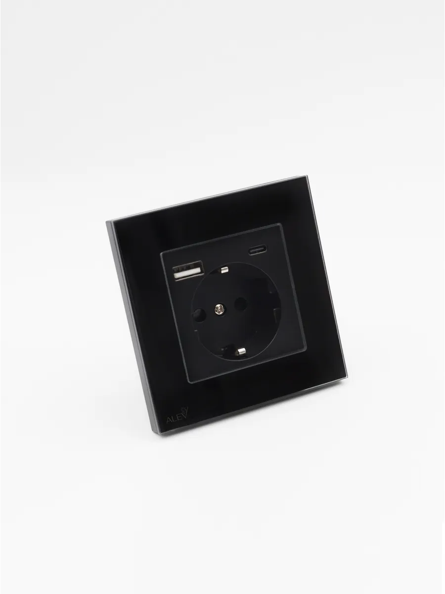 Одинарная розетка с рамкой из закаленного стекла черная бренда ALEV серия Glass- это эстетичное дополнение интерьера, которое будет радовать вас стильным внешним видом и безупречной функциональностью. Сочетающая качество и стиль встраиваемая модель оснащена закрывающими защитными шторками и заземлением для безопасности. Она идеально входит в стандартный настенный подрозетник квадратной или круглой формы.