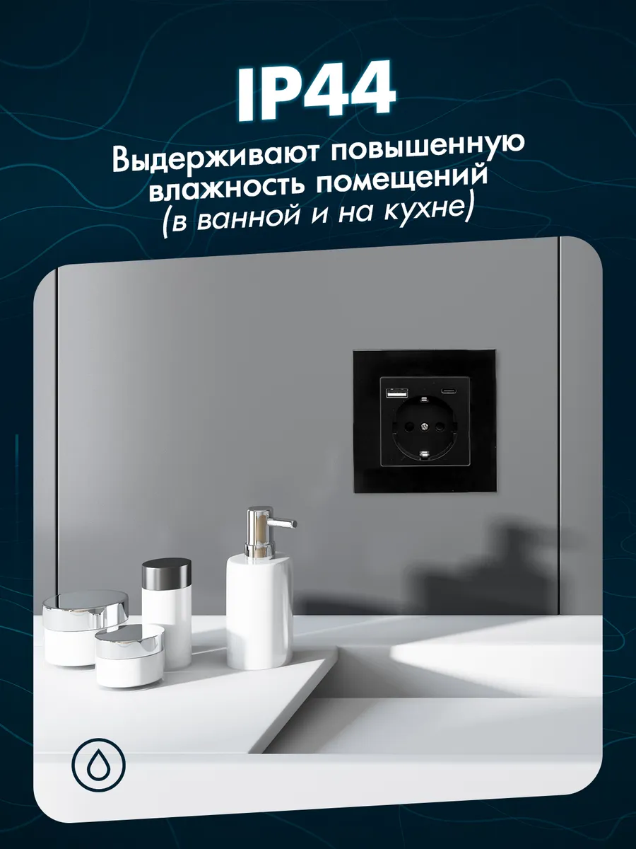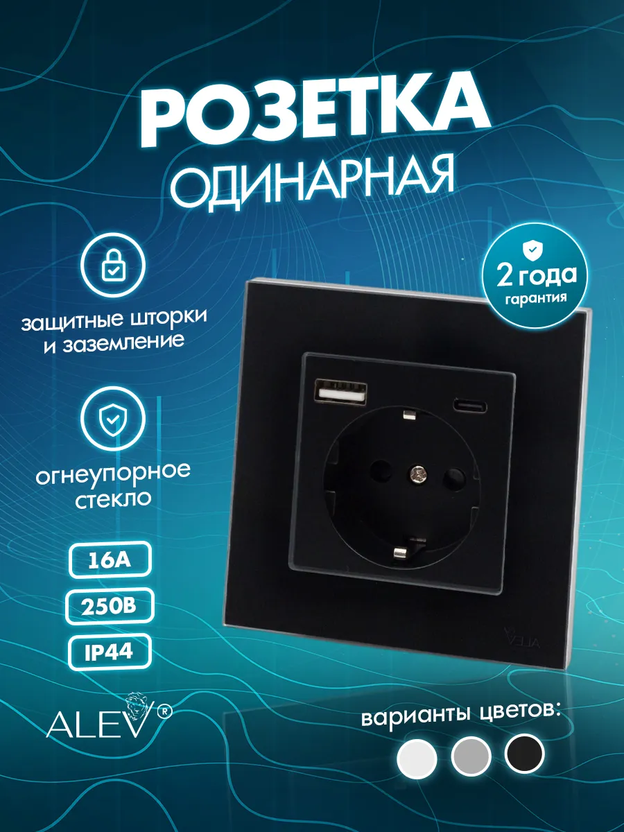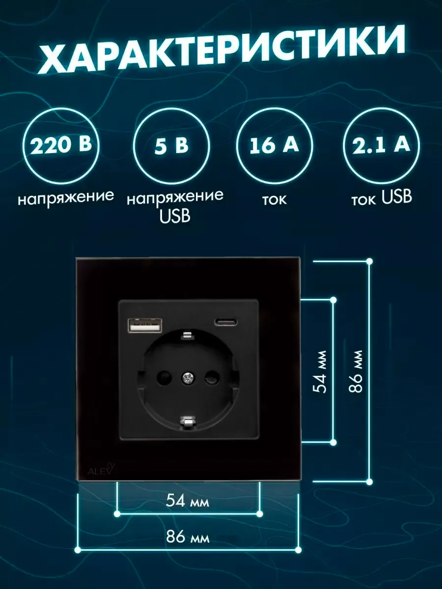 Качественное изделие выполнено длиной 86 мм, высотой 86 мм, глубиной 40 мм. Расстояние между отверстиями для болтов составляет 60 мм (болты идут в комплекте). Разъем Type-C для питания и зарядки электронных устройств. У устройства напряжение 100-240 В, сила тока 16А, USB: 5В/2А, Type-C: 5В/2А, степень защиты: IP44. Такая розетка может устанавливаться в помещениях с повышенной влажностью, будь то кухня или ванная комната. Ее основание выполнено из PC-термоустойчивого пластика в четырех базовых цветах: универсальном белом и лаконичном черном, в приятном оттенке серого окраса и изысканном золотом. Стильный дизайн изделия с ударопрочной стеклянной рамкой гармонично впишется в любой интерьер, будь то лофт или минимализм, скандинавский или прованс, классика, хай-тек или гранж.