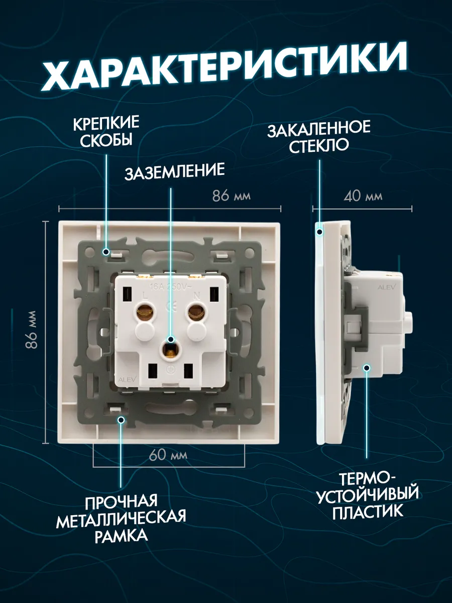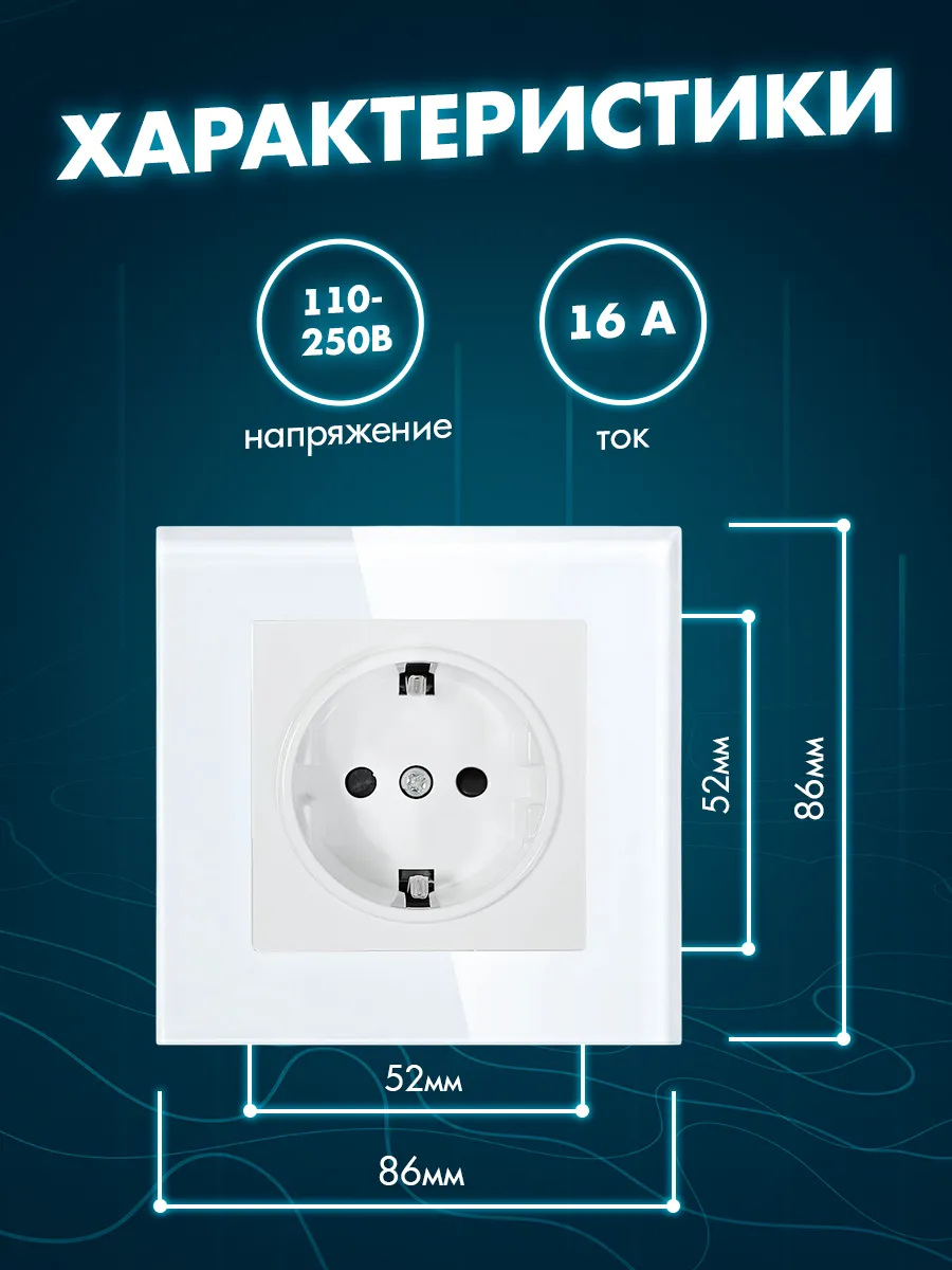 Качественное изделие выполнено длиной 86 мм, высотой 86 мм, глубиной 40 мм. Расстояние между отверстиями для болтов составляет 60 мм (болты идут в комплекте). У устройства напряжение 100-240 В, сила тока 16А, степень защиты: IP44. Такая розетка может устанавливаться в помещениях с повышенной влажностью, будь то кухня или ванная комната. Ее основание выполнено из PC-термоустойчивого пластика в четырех базовых цветах: универсальном белом и лаконичном черном, в приятном оттенке серого окраса и изысканном золотом. Стильный дизайн изделия с ударопрочной стеклянной рамкой гармонично впишется в любой интерьер, будь то лофт или минимализм, скандинавский или прованс, классика, хай-тек или гранж.