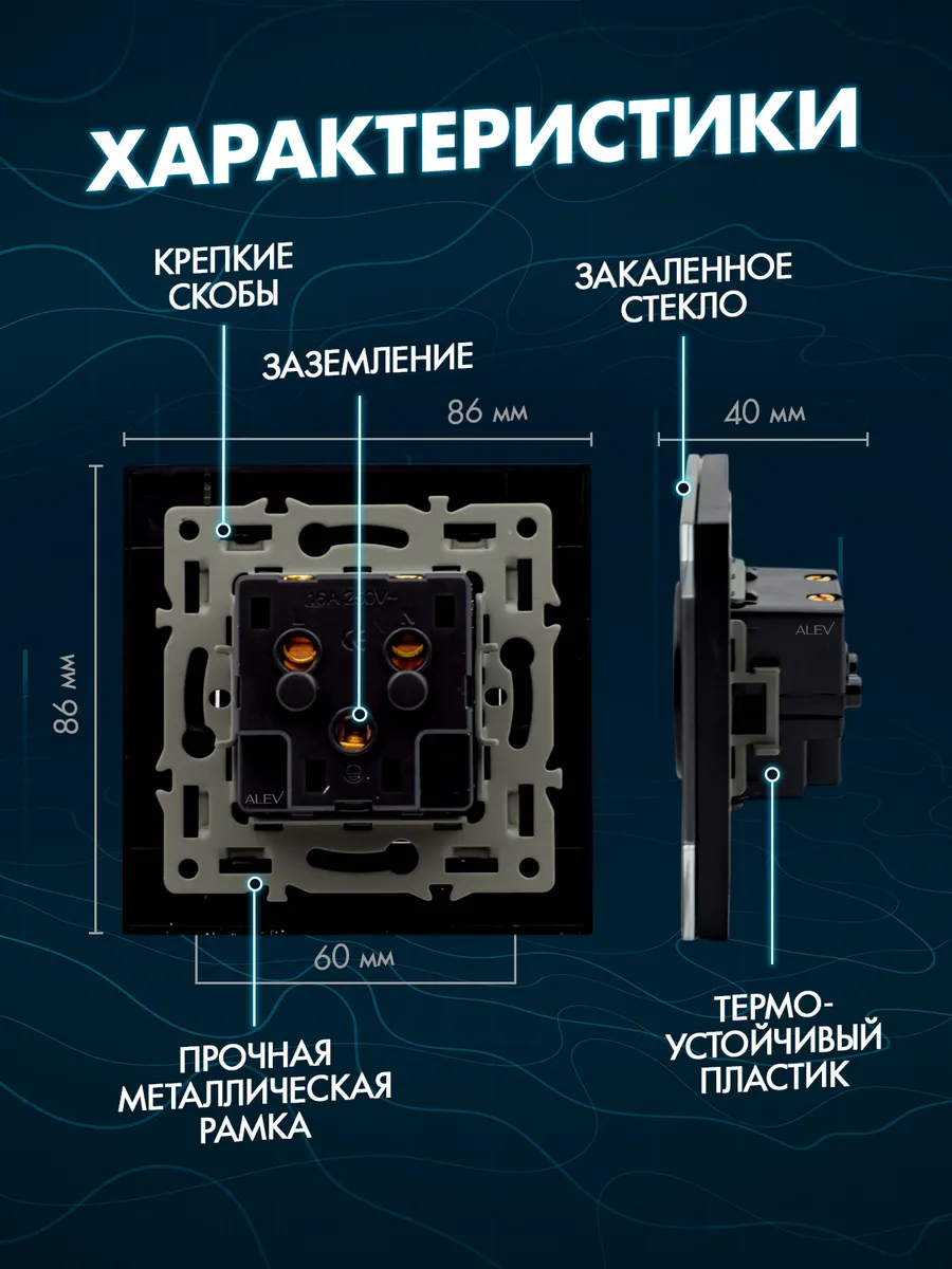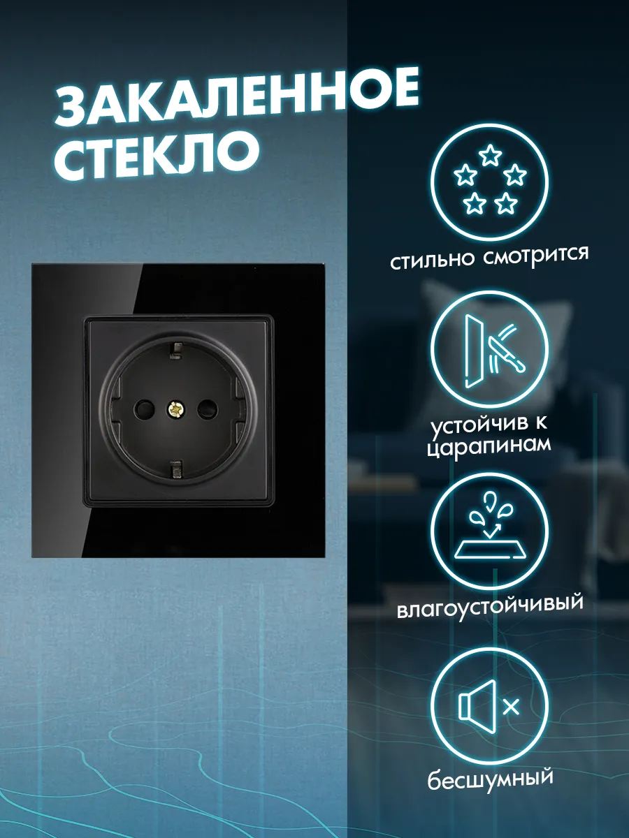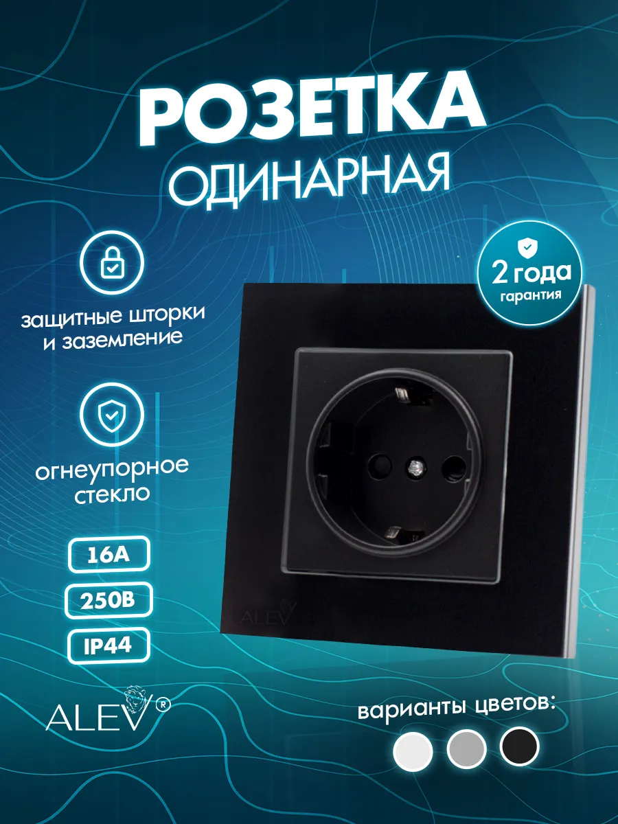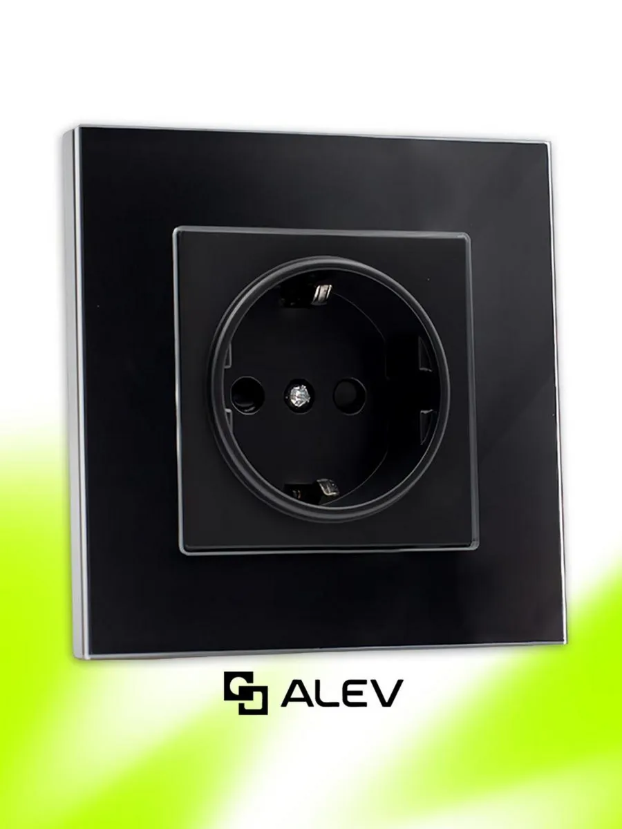 Одинарная розетка с рамкой из закаленного стекла черная бренда ALEV серия Glass - это эстетичное дополнение интерьера, которое будет радовать вас стильным внешним видом и безупречной функциональностью. Сочетающая качество и стиль встраиваемая модель оснащена закрывающими защитными шторками и заземлением для безопасности. Она идеально входит в стандартный настенный подрозетник квадратной или круглой формы.