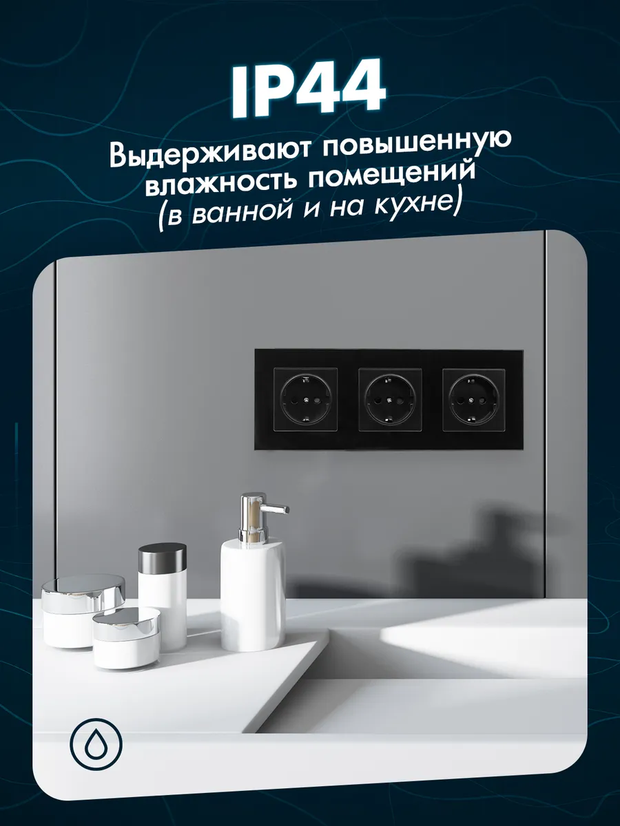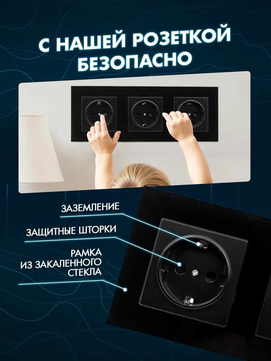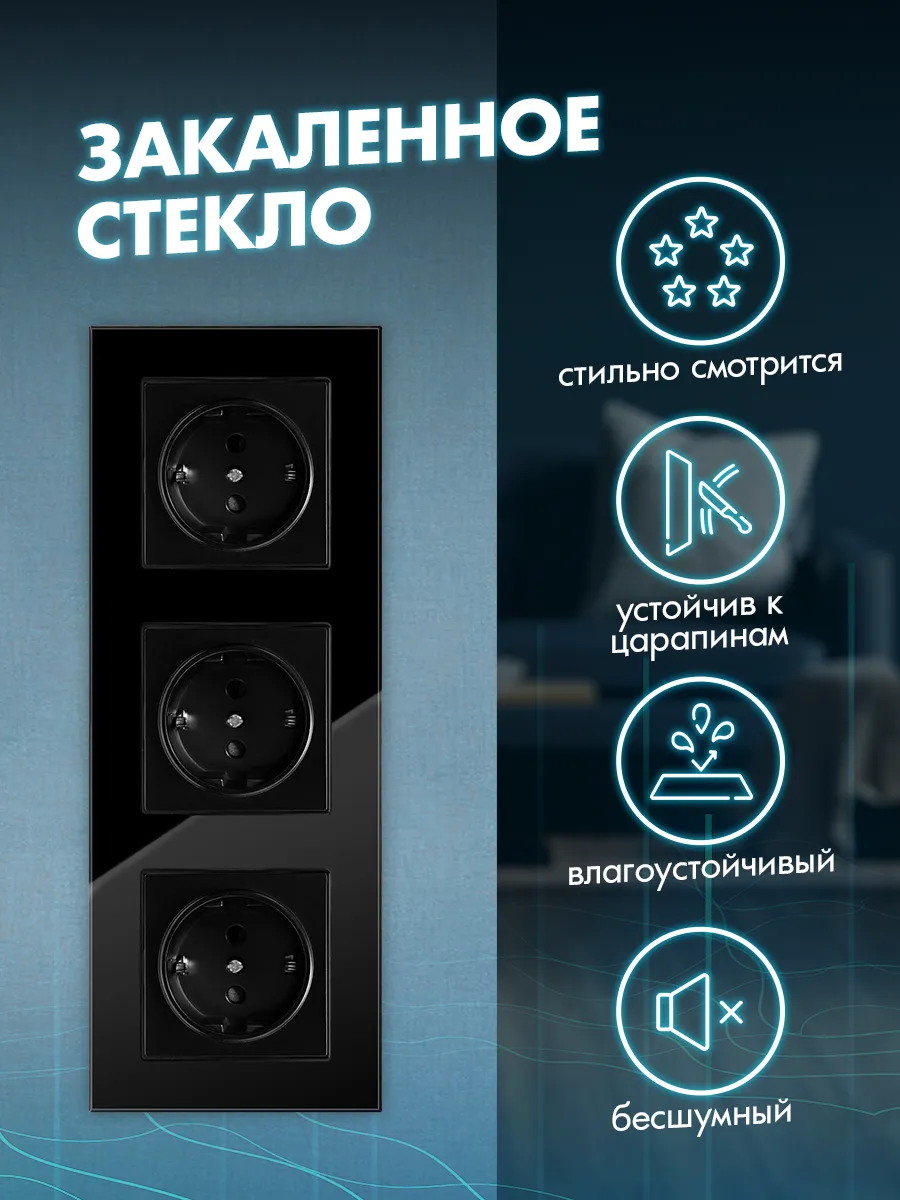 Тройная розетка черная с рамкой из закаленного стекла бренда ALEV серия Glass - это эстетичное дополнение интерьера, которое будет радовать вас стильным внешним видом и безупречной функциональностью. Сочетающая качество и стиль встраиваемая модель оснащена закрывающими защитными шторками и заземлением для безопасности. Она идеально входит в стандартный настенный подрозетник квадратной или круглой формы (3 шт).