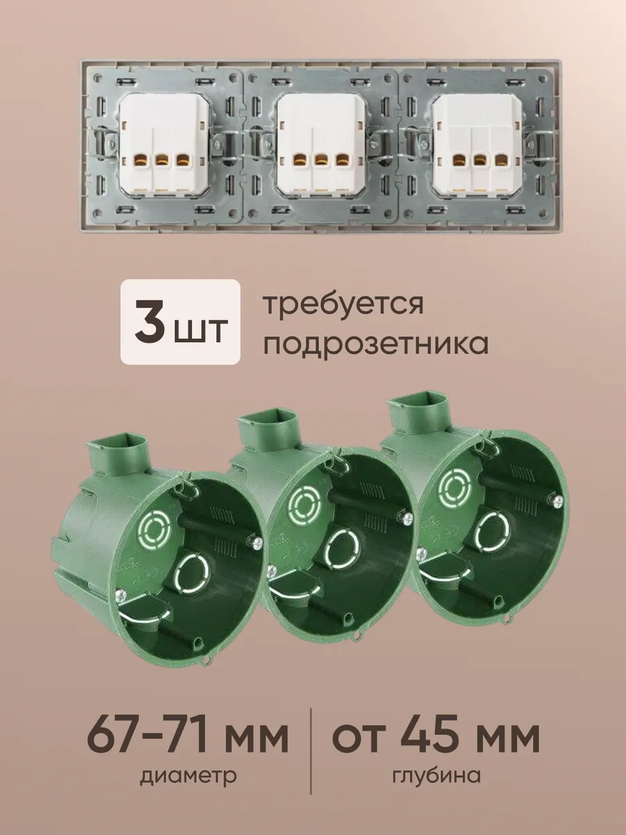Трехпостовая розетка с разъемом под ТВ и интернет бренда ALEV серия Basic - это типовой вариант модуля для простого подключения электроприбора к сети электропитания. Установка в горизонтальной ориентации. Современная модель розетки представляет собой интерфейс между электрической проводкой в стене и вилкой прибора. Она оборудована защитным шторками, выполнена с заземлением. Качественное изделие предназначено для скрытой установки в стандартный круглый подрозетник, а также квадратный. Встроенный механизм со степенью защиты IP21 предназначен для напряжения в 250В и силы тока в 16А, выполнен с корпусом прямоугольной формы: высотой 8 см и шириной 29,2 см, с глубиной 4,7см. Заземляющий контакт обеспечивает дополнительную защиту от удара электрическим током.