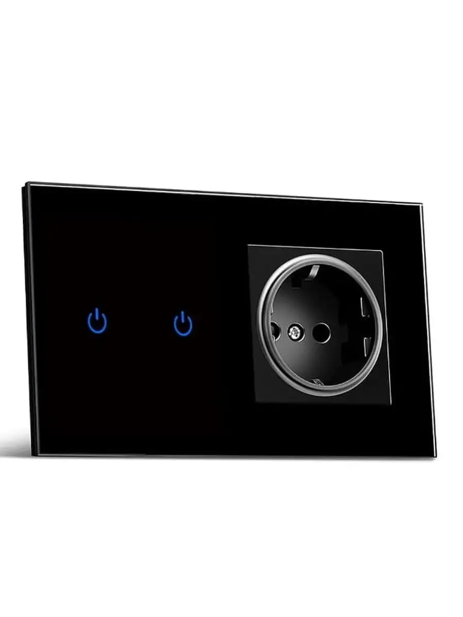 Двухклавишный сенсорный выключатель и одинарная розетка с рамкой из закаленного стекла черная ALEV GLASS Classic button в одном предмете стильное устройство для управления освещением. Идеально подходит для лампы, светильника или светодиодной ленты, благодаря своей надежности и простоте использования. Особенностью данного включателя является наличие чувствительного сенсора, который обеспечивает лёгкость в управлении светом. Это достигается за счет высокого уровня кинетической чувствительности, что позволяет максимально плавно реагировать на касания.