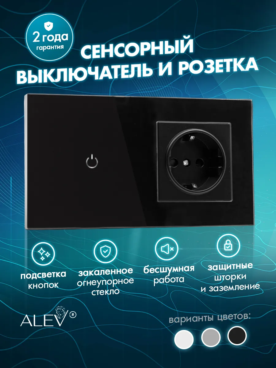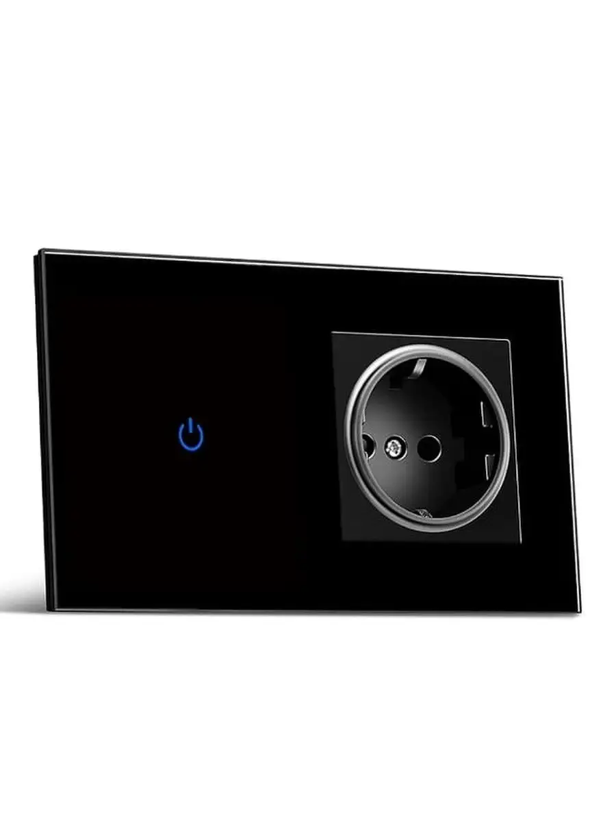 Одноклавишный сенсорный выключатель и одинарная розетка с рамкой из закаленного стекла черная в одном предмете ALEV GLASS Classic button стильное устройство для управления освещением. Он идеально подходит для лампы, светильника или светодиодной ленты, благодаря своей надежности и простоте использования. Особенностью данного включателя является наличие чувствительного сенсора, который обеспечивает лёгкость в управлении светом. Это достигается за счет высокого уровня кинетической чувствительности, что позволяет максимально плавно реагировать на касания.