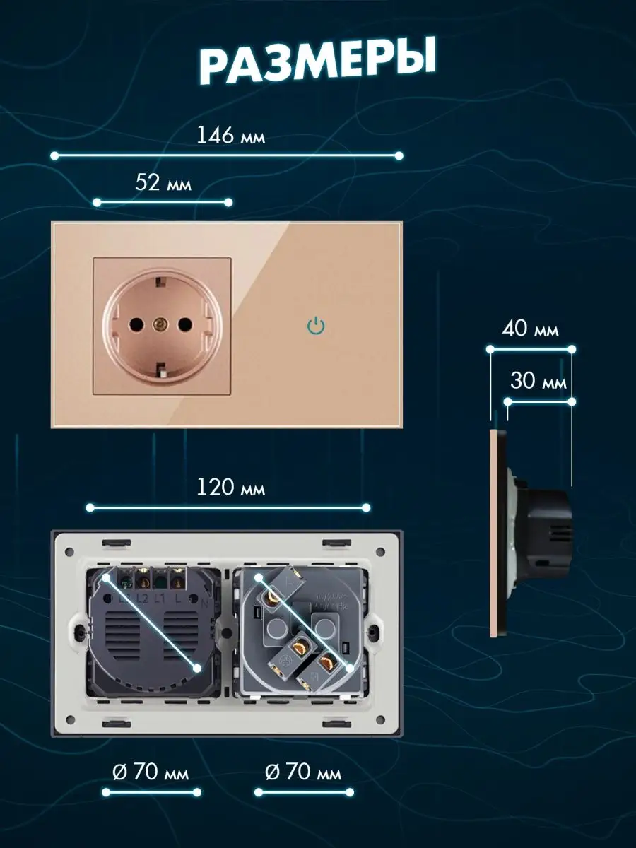 Проводные выключатели света с розеткой встраиваются в стену. Сенсорный выключатель изготовлен из огнестойкого калёного стекла, устойчивого к царапинам и повреждениям. Высокая сенсорная чувствительность: моментально реагирует на касание и пользоваться выключателем даже мокрыми руками. Прост в уходе - достаточно просто протереть выключатель света влажной салфеткой. Сенсорный включатель выключатель подходит для таких видов ламп как галогенные лампы, натриевые лампы высокого давления, светодиодные лампы, энергосберегающие лампы, лампы накаливания. Важно!!! После установки выключить автомат, затем установить стеклянную панель. Подождать 2-3 минуты и только потом включить автомат. Сенсорный выключатель, розетки и выключатели электрика, выключатель с розеткой, выключатель накладной, выключатель черный, проходной выключатель, сенсорный выключатель света, кнопка выключатель, включатель, выключатель для светильника, выключатель с подсветкой, включатель выключатель, выключатель двухклавишный с подсветкой, электрика для ремонта розетки и выключатели, выключатель двухклавишный накладной, выключатель для светодиодной ленты, выключатель белый, сенсорный выключатель для светодиодной ленты, выключатель маленький, выключатель уличный, выключатель мебельный, включатель сенсорный, выключатель электронный, выключатель электрический.