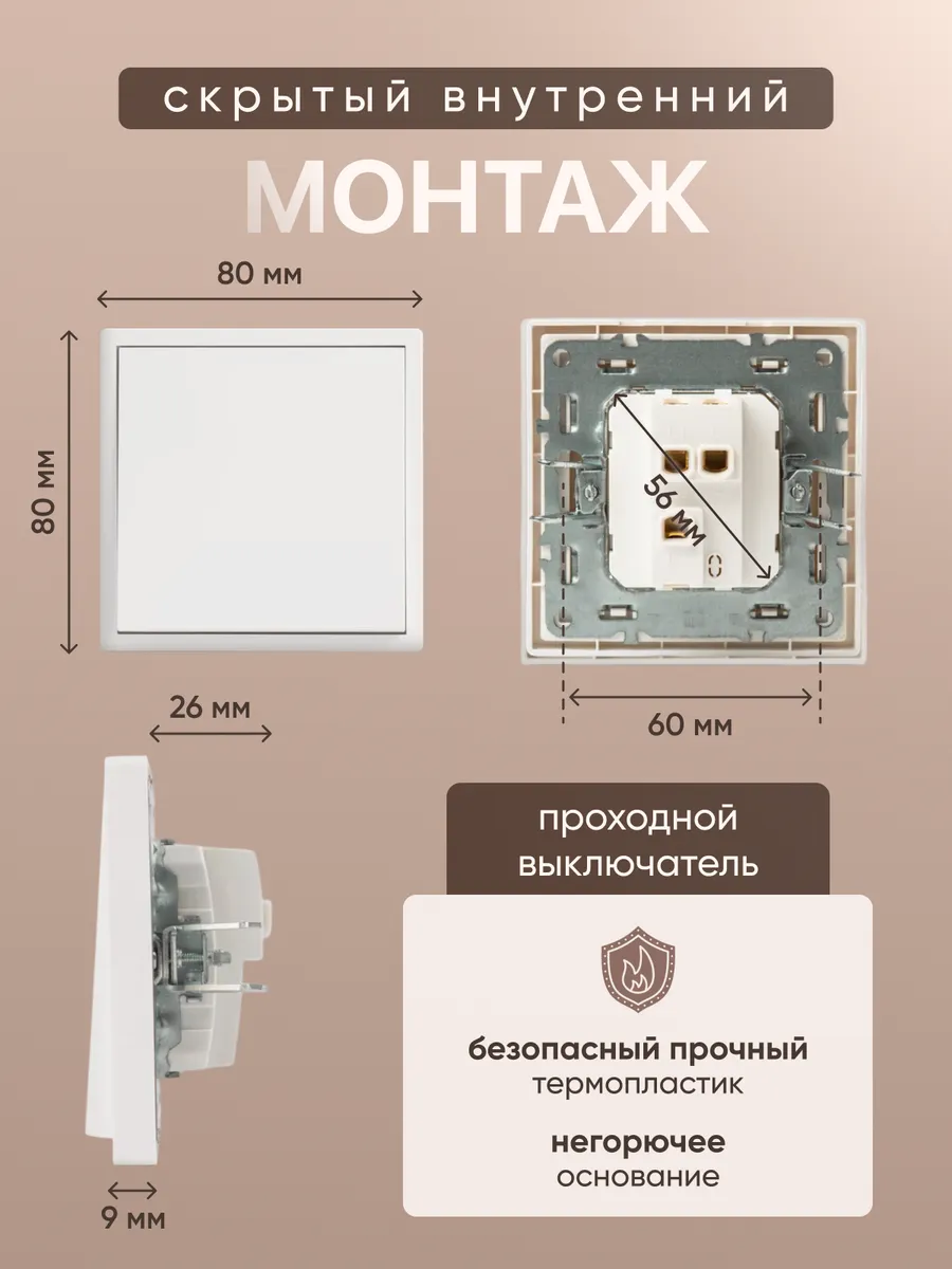 Современный электровыключатель дополнит интерьер дома или офиса в современном стиле, будет удобен для установки в процессе ремонта с целью обновления жилого пространства и создания надежной системы управления светом. Продукция поставляется в защитной упаковке для сохранности в процессе доставки покупателю из нашего магазина. У нас есть акции и распродажи, вы можете купить наши товары в подарок со скидкой