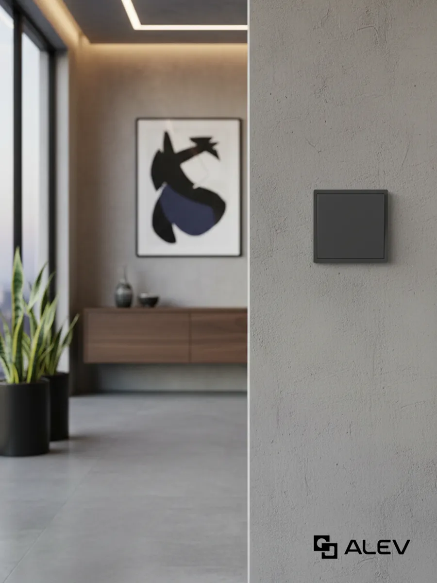Одноклавишный проходной выключатель ALEV BASIC - это удобное функциональное устройство для простого управления освещением. Коммутационный прибор выполнен в квадратной форме с размером 80 х 80 мм, в лаконичном дизайне и сером цвете. В комплекте однопостовая рамка из качественного пластика (1 штука) и механизм выключателя (1 штука) для номинального напряжения в 220-250В и номинального тока в 10А, для выполнения двух операций - замыкания и размыкания электрической цепи. Пластиковый блок с негорючим основанием удобен для скрытой установки, а простой монтаж в стандартный подрозетник не вызовет никаких сложностей.