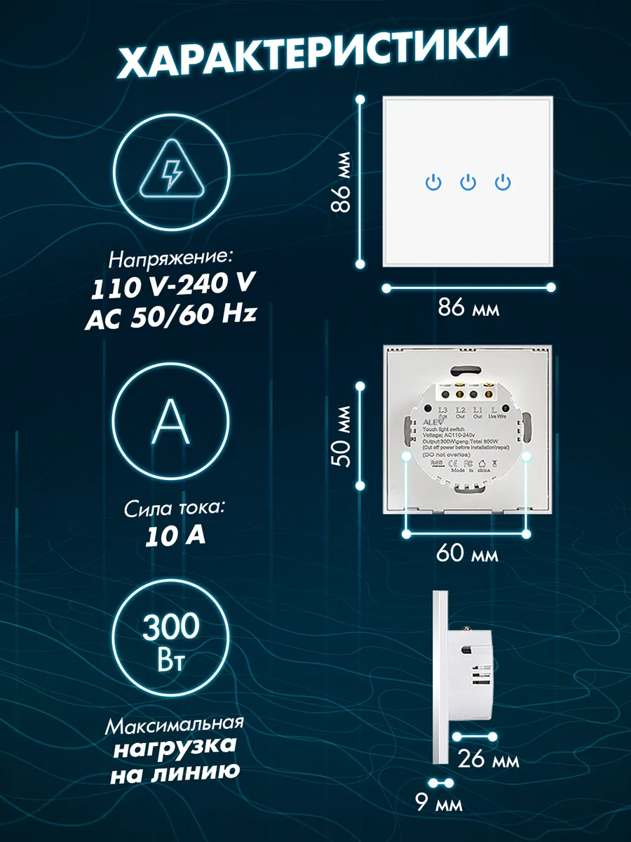 Трехклавишный сенсорный выключатель белый ALEV GLASS Classic button является стильным и современным устройством для управления освещением. Он идеально подходит для лампы, светильника или светодиодной ленты, благодаря своей надежности и простоте использования. Особенностью данного включателя является наличие чувствительного сенсора, который обеспечивает лёгкость в управлении светом. Это достигается за счет высокого уровня кинетической чувствительности, что позволяет максимально плавно реагировать на касания.