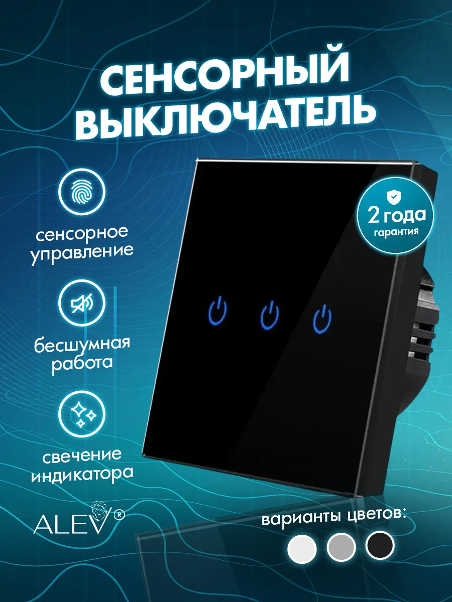 Трехклавишный сенсорный выключатель черный ALEV GLASS Classic button является стильным и современным устройством для управления освещением. Он идеально подходит для лампы, светильника или светодиодной ленты, благодаря своей надежности и простоте использования. Особенностью данного включателя является наличие чувствительного сенсора, который обеспечивает лёгкость в управлении светом. Это достигается за счет высокого уровня кинетической чувствительности, что позволяет максимально плавно реагировать на касания.